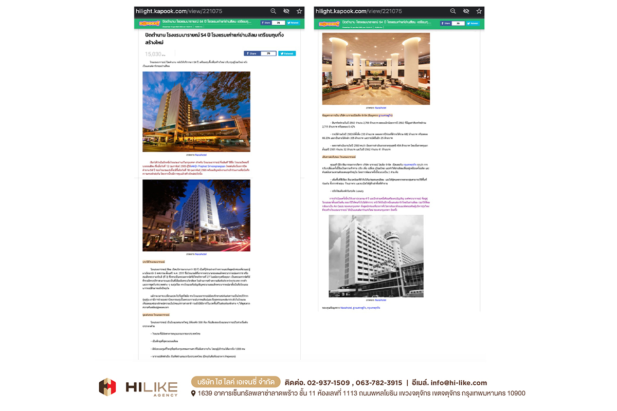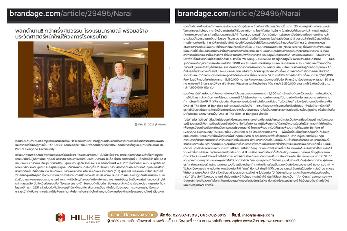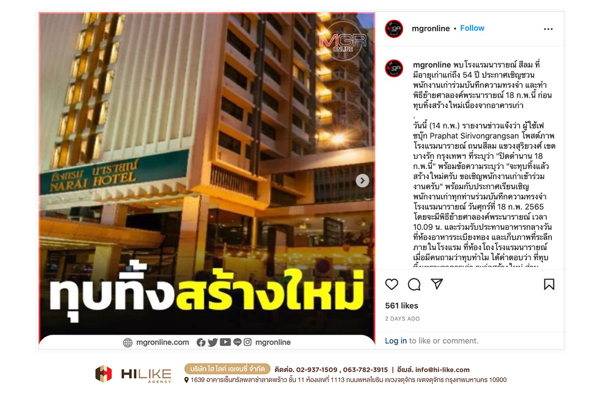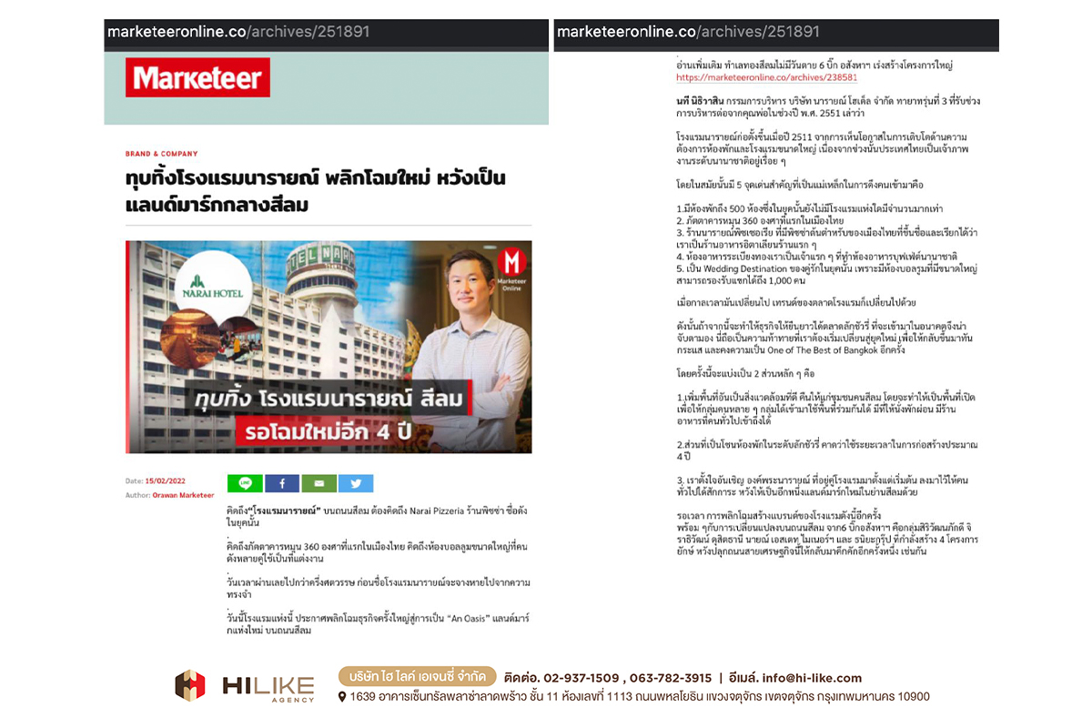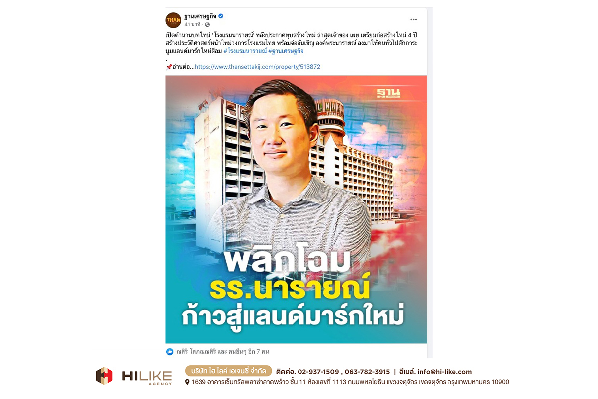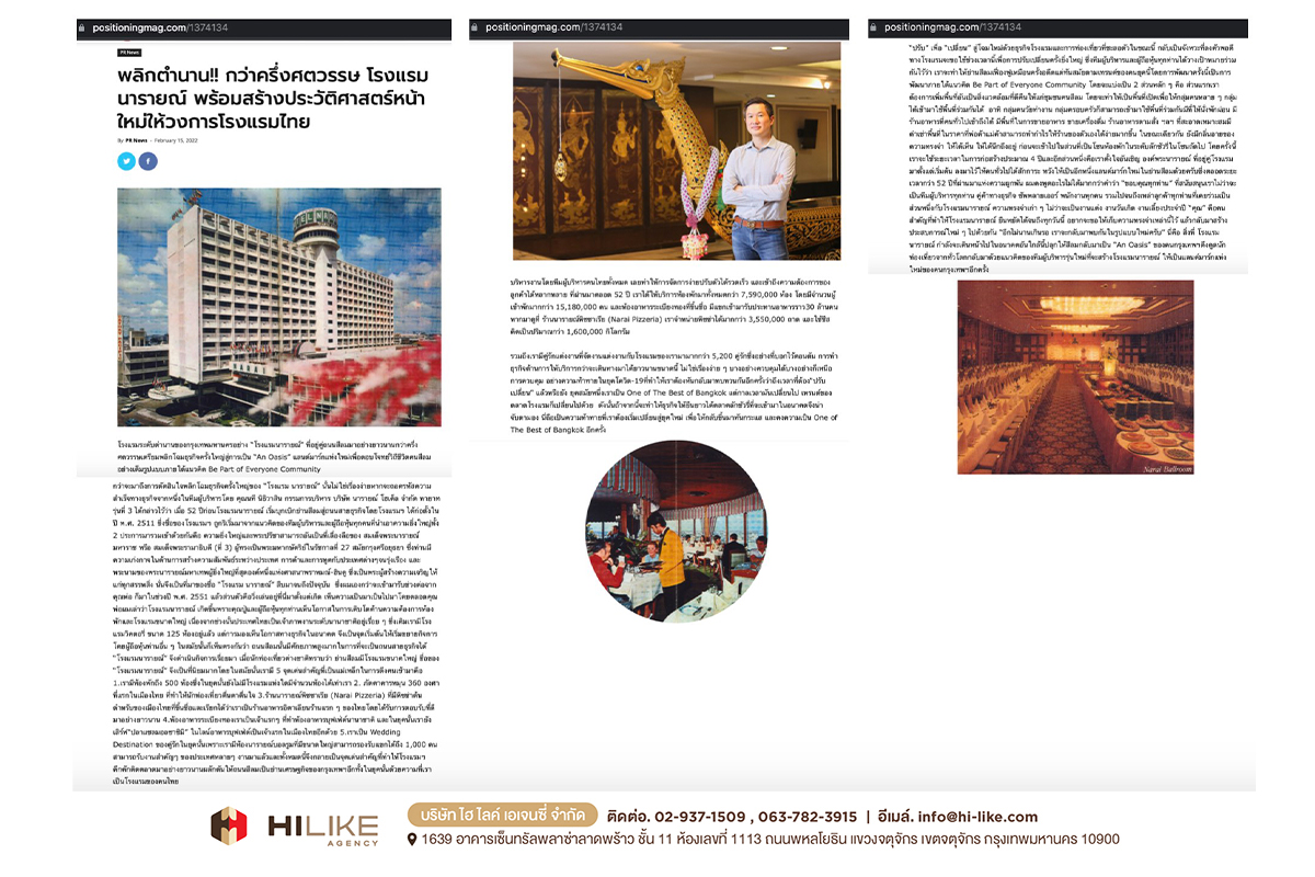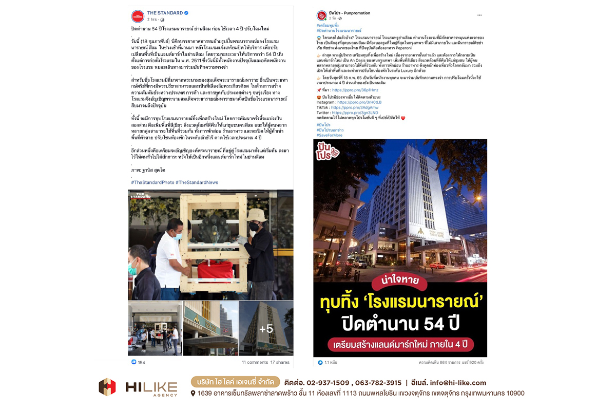กรุงเทพฯ – ถนนย่านสีลม มีศักยภาพสูงมาก ในการผลักดันพื้นที่ ให้กลายเป็นถนนสายธุรกิจที่พลิกโฉมหน้ากรุงเทพฯ สู่การขับเคลื่อนเศรษฐกิจมหภาค “โรงแรมนารายณ์” ถือเป็นหนึ่งในพลังขับเคลื่อนนั้นด้วย ตั้งแต่อดีตจนถึงปัจจุบัน ด้วยสถานการณ์ บริบททางสังคม และปัจจัยด้านความต้องการของผู้บริโภคที่เปลี่ยนไป